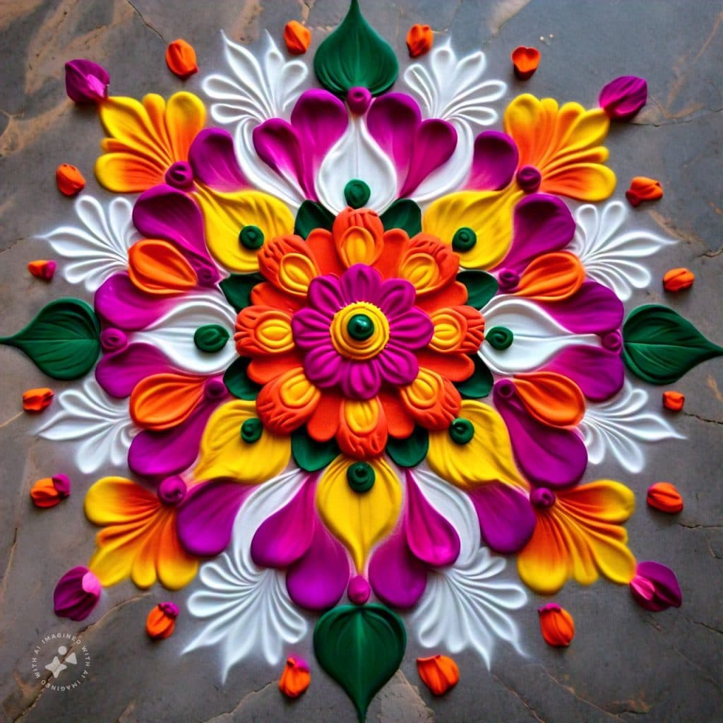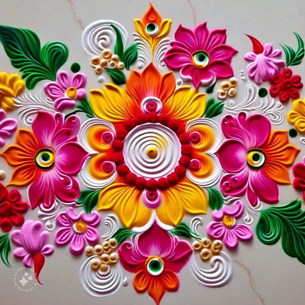 इस दिवाली आप रंगोली डिजाइन बनाने के लिए फूलों से प्रभावित रंगोली डिजाइन का इस्तेमाल भी कर सकते हैं. फूलों से बनी रंगोली डिजाइन देखने में बहुत भव्य और आकर्षक लगती है, इसे बनाना भी आसान होता है और यह कम समय भी लेती है.