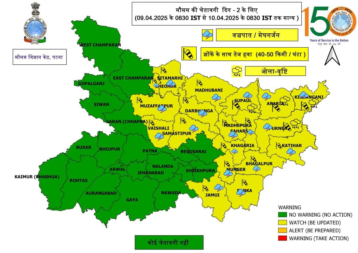 Bihar Rain Alert: बिहार के 18 जिलों में 9 और 10 अप्रैल को होगी भयंकर बारिश, IMD ने जारी किया येलो अलर्ट
