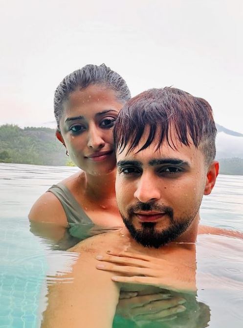 तसवीरों में चारों-तरफ पहाड़ ही पहाड़ देखने को मिल रहे हैं. वहीं ये कपल पूल में एक दूसरे संग रोमांटिक हो रहे हैं.