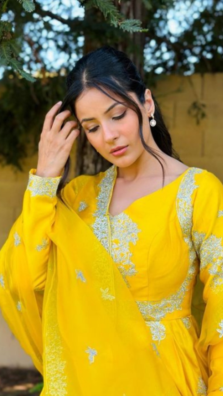 पीले अनारकली सूट में शहनाज गिल ने दिया परफेक्ट सावन वाइब्स