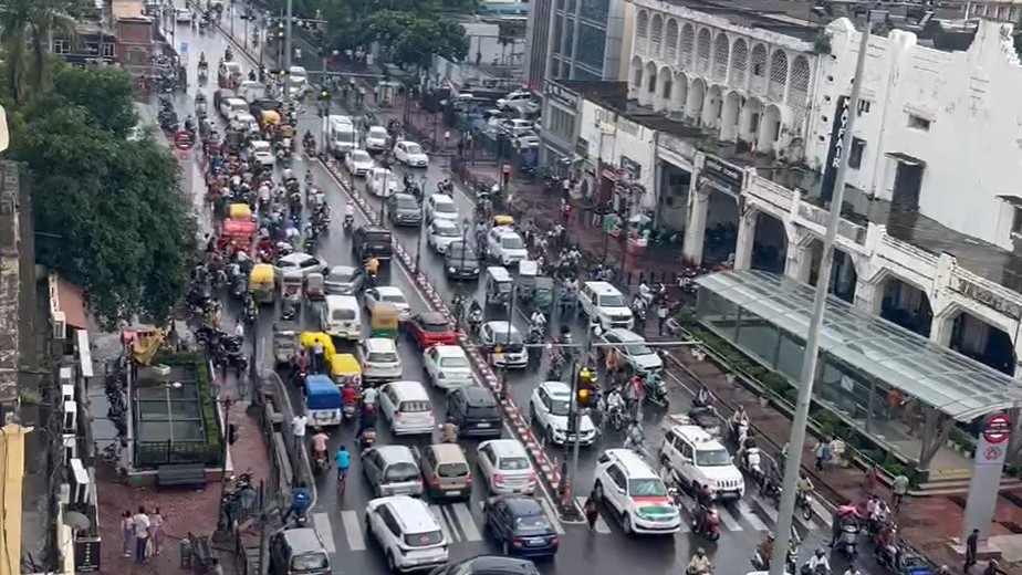 दोपहिया वाहन चालक सड़क पर पानी निकलने का इंतजार करते दिखे, जिससे उनके वाहनों में पानी में न चला जाए.