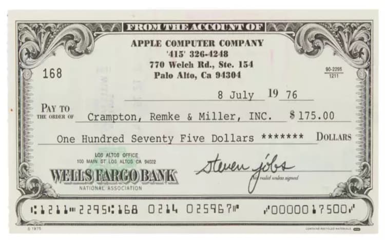 Macrumors की रिपोर्ट के अनुसार, यह चेक 47 साल पुराना है और इसे साल 1976 में ऐपल के को-फाउंडर स्टीव जॉब्स द्वारा भरा गया था. यह चेक क्रैम्प्टन, रेम्के ऐंड मिलर, आईएनसी के लिए भरा गया था. यह एक कंसल्टेंसी फर्म है जो नॉर्थ कैलिफोर्निया में टेक कंपनियों को सर्विसेज ऑफर करती है. आरआर ऑक्शन की ओर से आयोजित नीलामी में स्टीव जॉब्स द्वारा साइन किया गया यह चेक 106,985 डॉलर में बिका. उस समय जो इस चेक पर कीमत लिखी थी वह 175 डॉलर है. इससे यह कहा जा सकता है कि 14 हजार रुपये का यह चेक कई गुना कीमत पर खरीदा गया है.