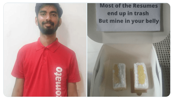 बेंगलुरु के Aman Khandelwal ने नौकरी पाने के लिए बिलकुल अतरंगी तरीका आजमाया. उन्होंने सबसे पहले Zomato के डिलीवरी एक्जीक्यूटिव के कपड़े पहने. उसके बाद उन्होंने अपने हाथ में पेस्ट्री का एक डब्बा लिया. उसमे 2 पेस्ट्री डाले और पेस्ट्री के साथ अपना बायोडेटा रखा. बाद में उन्होंने हर ऑफिस के हेड तक उस डब्बे को डिलीवर किया. Aman के तरफ से उठाया गया यह कदम काफी अनोखा है. आपको बात दें Aman ने दो तस्वीरें शेयर की है जिसमे पेहली तस्वीर में उन्होंने Zomato के कपड़े पहने हैं और दूसरी में एक पेस्ट्री बॉक्स है जिसमे 2 पेस्ट्री रखा हुआ है. Aman ने हर स्टार्टअप कंपनी को अपना बायोडेटा भेजा.
