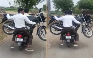 सोशल मीडिया पर वायरल हो रहे इस वीडियो में दो लोग एक बाइक को अपनी बाइक पर लादकर सड़क पर जाते दिख रहे हैं. ट्विटर पर इस वीडियो को सिराज नूरानी नाम के यूजर ने शेयर किया है. इसके कैप्शन में लिखा है कि यह वीडियो औरंगाबाद के वैजापुर का है. इस वीडियो ने सोशल मीडिया पर लोगों का ध्यान खींचा है.