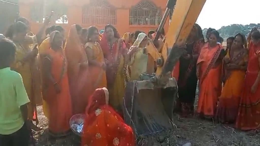 सिवान के छितनपुर गांव में जेसीबी से मटकोड़. फोटो-वीडियो: सिवान से अरविंद कुमार