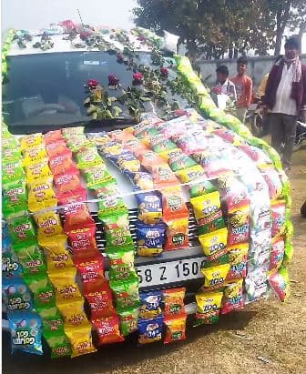 Bizarre News: दूल्हे की कार को बना दिया चिप्स-कुरकुरे की शॉप, वीडियो वायरल