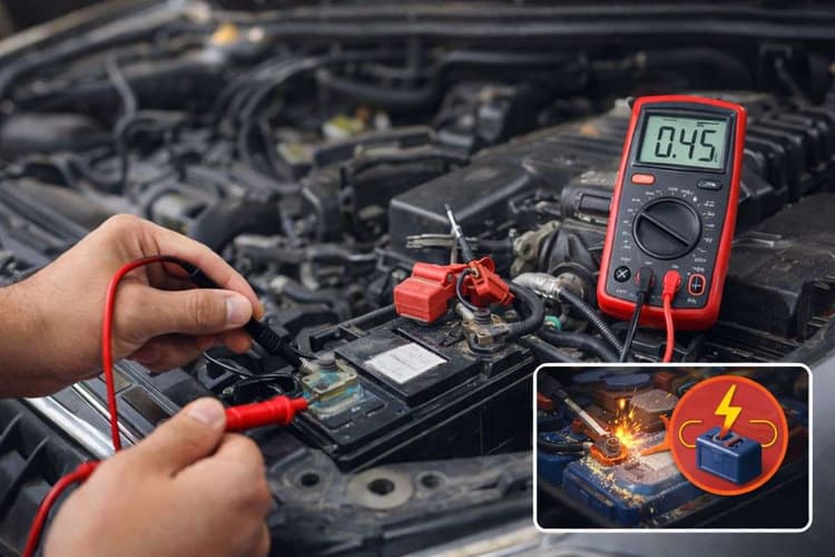 करेंट लीकेज की पहचान मल्टीमीटर टेस्ट या फ्यूज चेकिंग से की जा सकती है. सामान्य स्थिति में बैटरी पर 30-50 mA तक का करंट ड्रॉ स्वीकार्य है. इससे अधिक रीडिंग लीकेज का संकेत देती है. खराब रिले, डोर स्विच, अल्टरनेटर डायोड, शॉर्ट वायरिंग, आफ्टरमार्केट एक्सेसरीज और OBD डिवाइस इसके प्रमुख कारण हैं.