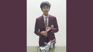 Indian student builds hand sanitizer robot in Dubai: दुबई : कोरोनो वायरस प्रकोप के मद्देनजर ‘सुरक्षित रहें और स्वच्छ रहें’ ध्येय से प्रेरित संयुक्त अरब अमीरात (यूएई) में कक्षा सात में पढ़ने वाले एक भारतीय छात्र ने एक ऐसा रोबोट बनाया है जो 30 सेंटीमीटर की दूरी से हाथ को पहचानकर सैनिटाइजर देता है.
