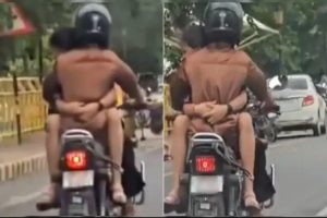 बताया जा रहा है कि यह कपल गोरखपुर के प्रसिद्ध पर्यटन स्थल रामगढ़ ताल घूमने आया था. वहीं किसी राहगीर ने इनका वीडियो रिकॉर्ड कर लिया जो देखते ही देखते सोशल मीडिया पर वायरल हो गया. वीडियो में युवक हेलमेट पहने बाइक चला रहा है, जबकि युवती सामने की ओर बैठकर उसे दोनों हाथों से कसकर पकड़े हुए है.
