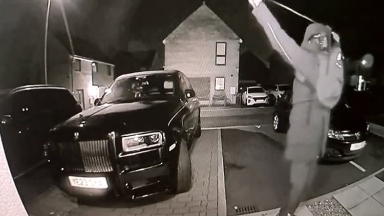 सोशल मीडिया के प्रमुख मंच एक्स (पुराना ट्विटर) पर क्रेजी क्लिप्स नाम यूजर ने लंदन में चोरी की गई रोल्स रॉयस कार के सीसीटीवी फुटेज को पोस्ट किया है. इस वीडियो में देखा जा सकता है कि हूडी पहने दो चोर रोल्स रॉयस कार के नजदीक गए.