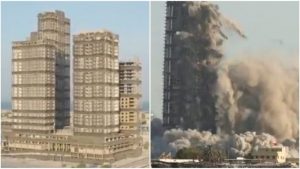 165 मीटर ऊंचे इस टावर को नियंत्रित डायनामाइट लगाकर जमींदोज कर दिया गया, जो मीना प्लाजा का हिस्सा थी. रिपोर्ट के मुताबिक, इमारत को गिराने के लिए 915 किलोग्राम विस्फोटक को 3000 से ज्यादा डेटोनेटर के जरिये एक्टिव किया गया, जिसके बाद पलभर में ही इमारत का नामोनिशान मिट गया.