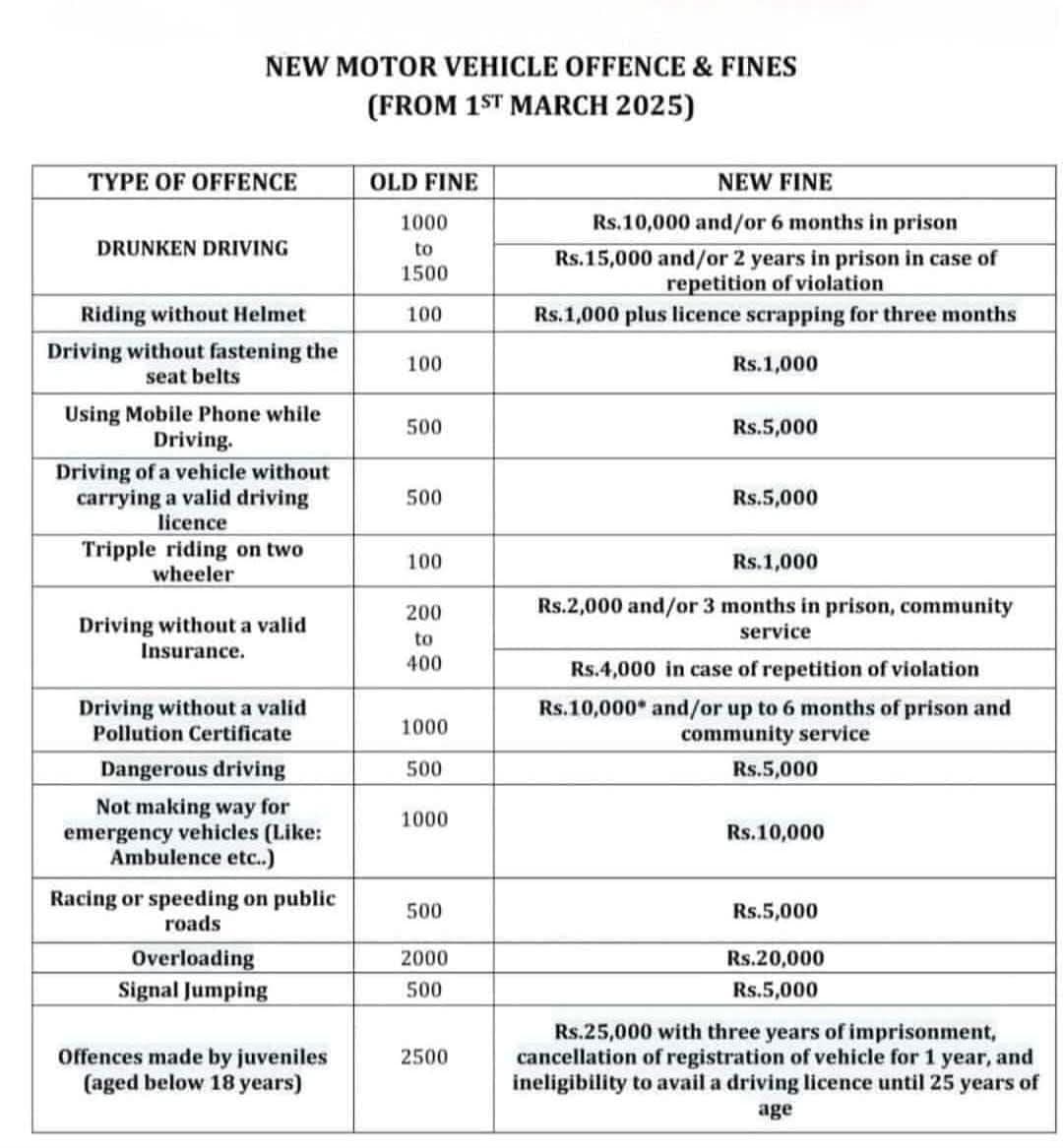 New Motor Vehicle Fines 2025