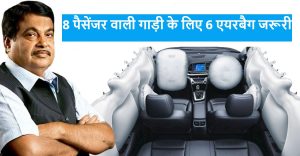 8 पैसेंजर वाली गाड़ी के लिए 6 एयरबैग जरूरी, केंद्रीय मंत्री नितिन गडकरी का बड़ा ऐलान