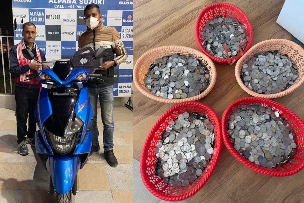 YouTuber Hirak J Das ने यह कहानी सोशल मीडिया पर शेयर की है. इसके मुताबिक, असम में पेशे से दुकानदार इस शख्स को अपने सपनों का स्कूटर खरीदना था. इसके लिए वह महीनों से गुल्लक में सिक्के जमा कर रहा था. हाल ही में जब स्कूटर खरीदने भर के पैसे इकट्ठे हो गए तो वह इन्हें बोरी में भरकर स्कूटर खरीदने के लिए शोरूम पहुंच गया.