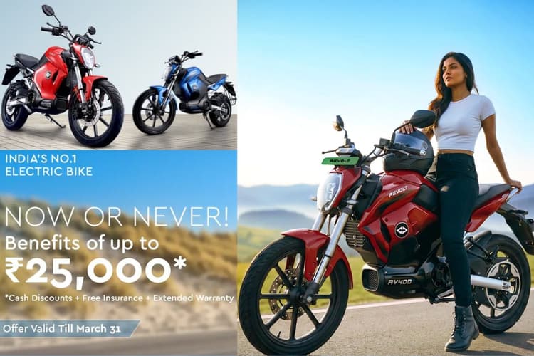 रिवोल्ट मोटर्स ने अपने इलेक्ट्रिक मोटरसाइकल्स पर लिमिटेड पीरियड ऑफर अनाउंस किया है. इस ऑफर के तहत कस्टमर्स को ₹25,000 तक के बेनिफिट्स मिल सकते हैं, जो 31 मार्च 2026 तक वैलिड रहेंगे.