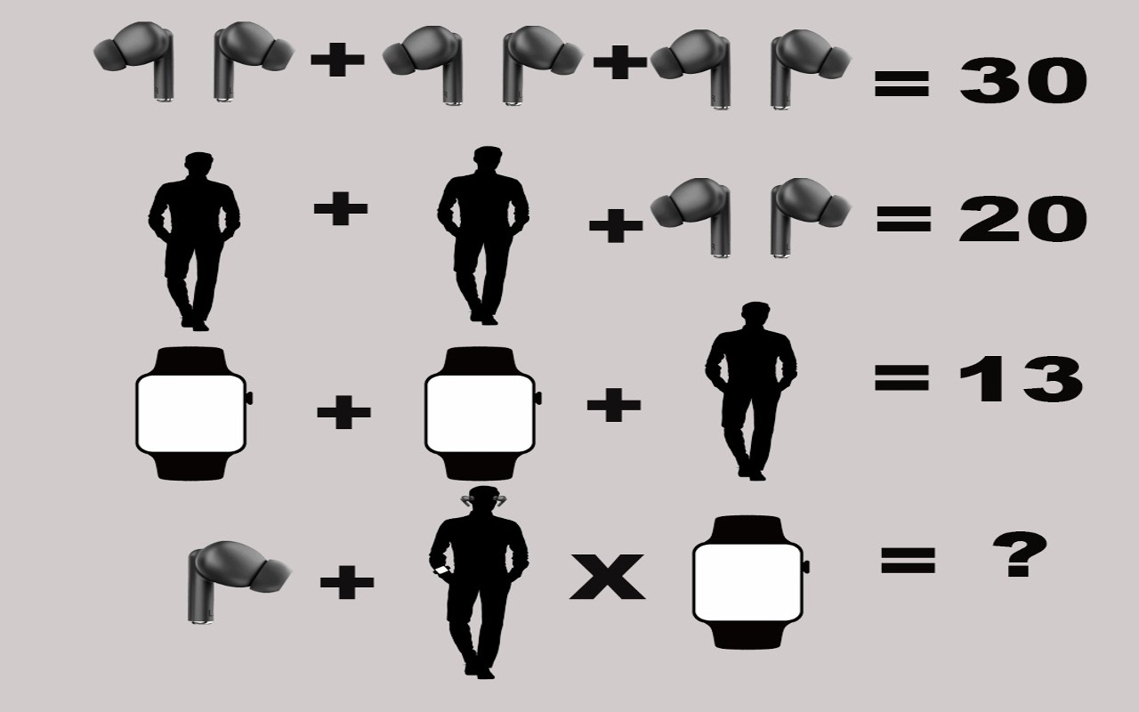 समीकरण 4: 5 + (10 + 5 + 4) x 4 (इसलिए, यहां एक पीस हेडफोन = 5; साथ ही आदमी ने हेडफोन पहन रखा है और घड़ी पहन रखी है = 10 + 5 + 4)