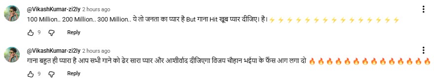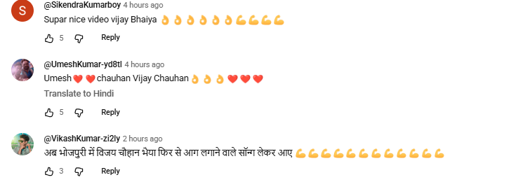 शिल्पी राज के लेटेस्ट ट्रैक पर यूट्यूब पर कमेंट्स की बौछार आ गई है. एक मीडिया यूजर ने कमेंट बॉक्स में लिखा, विजय चौहान भैया बवाल सॉन्ग. एक यूजर ने लिखा, सुपरहिट बा हो बॉस. एक यूजर ने लिखा, जियो भोजपुरी बाहुवली आवाज के जादूगर किंग ब्रांड एम्बेसडर ग्लोबल स्टार पावरफुल सॉन्ग ब्लॉकबस्टर बलास्ट. एक यूजर ने लिखा, मल्टी टैलेंटेड स्टार विजय चौहान. एक यूजर ने लिखा, सुपर नाइस वीडियो विजय भैया. एक यूजर ने लिखा, अब भोजपुरी में विजय भैया फिर से आग लगाने वाला सॉन्ग लेकर आए.