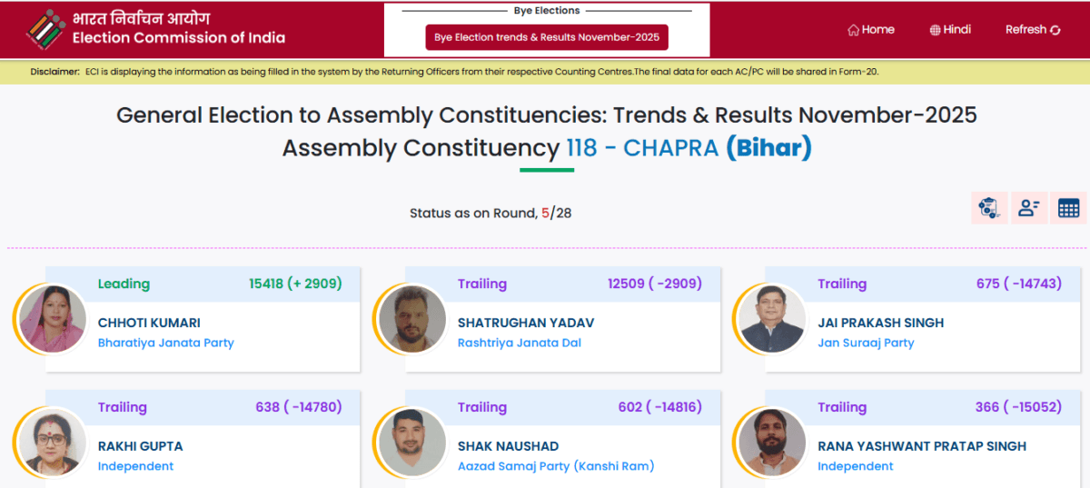 Also Read: बिहार चुनाव परिणाम की ताजा खबरों के लिए क्लिक करें