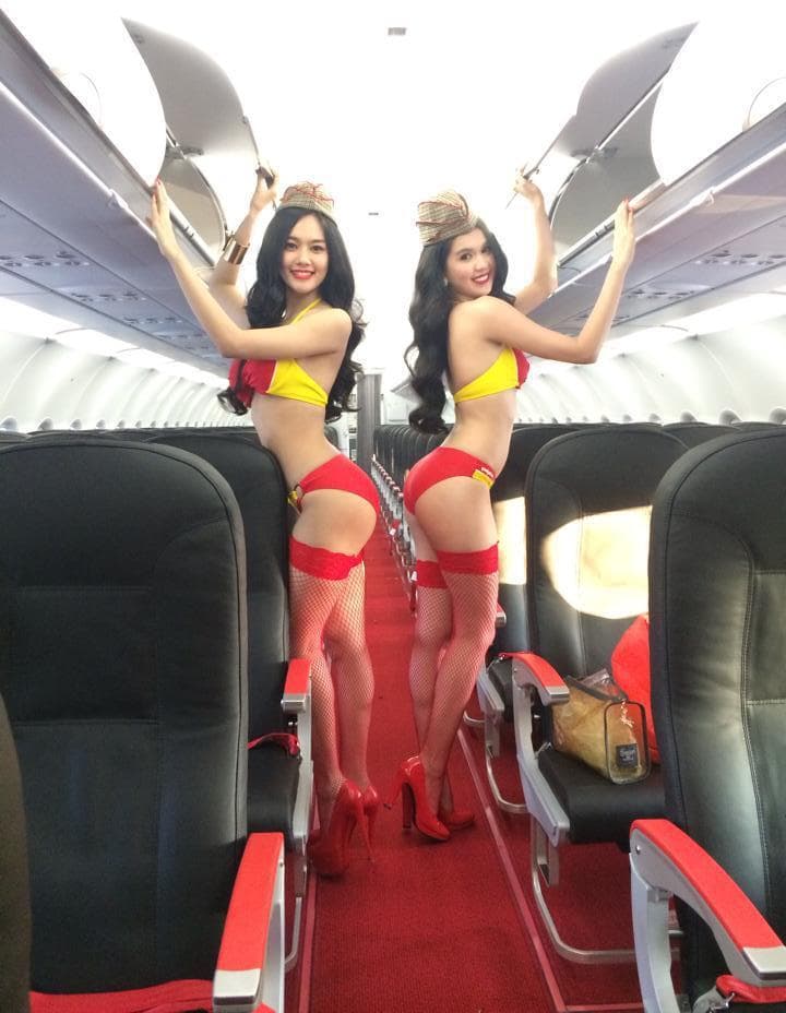 एयरलाइंस कंपनी के विमान में एयर होस्टेस बिकनी पहने हुए फ्लाइट के अंदर, बाहर और रनवे के आसपास नजर आ रही हैं. इसके अलावा बिकनी पहने हुए ही एयर होस्टेस औवर हैड लॉकर्स खोलती नजर आ रही हैं तो कुछ इसी पोज में विमान की सीढियों पर हैं.