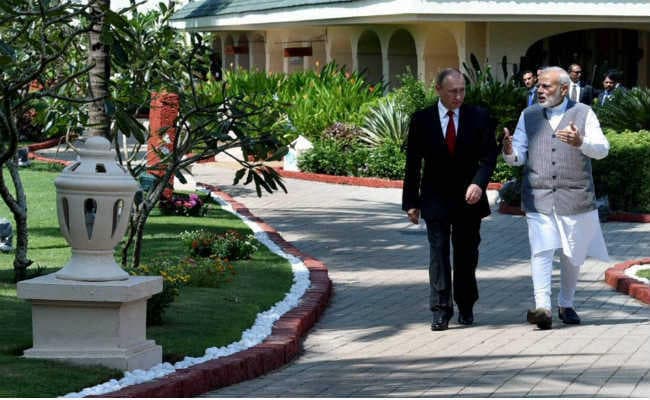 बेनौलिम/ गोवा: रक्षा संबंध को मजबूत करते हुए भारत और रूस ने लगभग 43,000 करोड़ रुपये की लागत के तीन बडे रक्षा सौदों पर आज हस्ताक्षर किए. इसमें सर्वाधिक उन्नत वायु रक्षा प्रणाली की खरीद शामिल है. प्रधानमंत्री नरेन्द्र मोदी और रुसी राष्ट्रपति व्लादिमीर पुतिन के बीच विस्तृत बातचीत के बाद इन रक्षा सौदों के बारे में फैसले किए गए. दोनों नेताओं ने रक्षा सहित कई क्षेत्रों पर बातचीत की.अमेरिका और यूरोप के साथ भारत के बढते रक्षा संबंधों के बीच मोदी ने इस बात पर जोर दिया कि रुस भारत का बडा रक्षा और सामरिक साझेदार बना रहेगा.