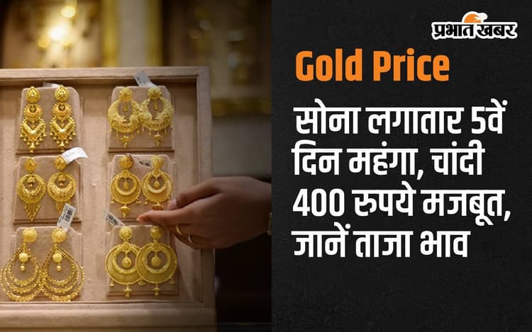 Gold Price Today: अंतरराष्ट्रीय बाजारों में मजबूती और जौहरियों की लगातार लिवाली से घरेलू सर्राफा बाजार (Domestic Bullion Market) में मंगलवार को सोने की कीमत में लगातार 5वें दिन तेजी जारी रही. यह 550 रुपये बढ़कर 75,700 रुपए प्रति 10 ग्राम पर पहुंच गया. अखिल भारतीय सर्राफा संघ की ओर से दी गई जानकारी के अनुसार, दिल्ली के सर्राफा बाजार (Delhi Bullion Market) में 99.9 प्रतिशत और 99.5 प्रतिशत शुद्धता वाले सोने का भाव बढ़कर क्रमश: 75,700 रुपये प्रति 10 ग्राम और 75,350 रुपये प्रति 10 ग्राम हो गया. 10 जुलाई के बाद से शुरू हुए पिछले पांच कारोबारी सत्रों में सोने में 1,300 रुपये प्रति 10 ग्राम की तेजी आई है. चांदी की कीमत (Silver Price) भी 400 रुपये बढ़कर 94,400 रुपये प्रति किलोग्राम हो गई. पिछले सत्र में यह 94,000 रुपये प्रति किलोग्राम पर बंद हुई थी.