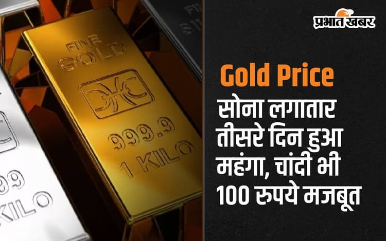 Gold Price Today: गहना-जेवर बेचने वाले दुकानदारों की ओर से लिवाली करने और अंतरराष्ट्रीय बाजारों में मजबूती के चलते दिल्ली के सर्राफा बाजार में सोना (Gold) लगातार तीसरे दिन महंगा हो गया. सफेद महंगी धातु चांदी दो दिन सुस्ताने के बाद 100 रुपये मजबूत हो गई. अखिल भारतीय सर्राफा संघ की ओर से दी गई जानकारी के अनुसार, दिल्ली के सर्राफा बाजार में गुरुवार को सोना 50 रुपये की तेजी के साथ 75,100 रुपये प्रति 10 ग्राम पर बंद हुआ. बुधवार को सोना 75,050 रुपये प्रति 10 ग्राम पर बंद हुआ था. चांदी की कीमत (Silver Price) भी 100 रुपये की तेजी के साथ 94,500 रुपये प्रति किलोग्राम पर पहुंच गई. इससे पिछले सत्र में चांदी (Silver) 94,400 रुपये प्रति किलोग्राम पर बंद हुई थी. संघ ने कहा कि सर्राफा बाजारों में सोना पिछले बंद भाव के मुकाबले 50 रुपये बढ़कर 75,100 रुपये प्रति 10 ग्राम पर कारोबार किया है.