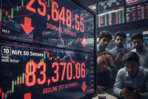 Indian Stock Market 14 January 2026: आज सुबह जब भारतीय शेयर बाजार खुला, तो निवेशकों के चेहरे पर थोड़ी मायूसी दिखी. ऐसा इसलिए हुआ क्योंकि बुधवार की शुरुआत ‘रेड जोन’ में हुई, यानी मार्केट गिरावट के साथ खुला है. इसकी सबसे बड़ी वजह सात समंदर पार अमेरिका से आ रही खबरें हैं. दरअसल, अमेरिका ने ईरान के साथ व्यापार करने वाले देशों पर 25 प्रतिशत का भारी-भरकम टैरिफ (टैक्स) लगाने की धमकी दी है. इस भू-राजनीतिक तनाव की वजह से ग्लोबल मार्केट में हलचल मच गई है और हमारा निफ्टी 50 इंडेक्स 83.75 अंकों की गिरावट के साथ 25,648.55 पर खुला है. वहीं, सेंसेक्स भी पीछे नहीं रहा और 257.63 अंकों की डुबकी लगाकर 83,370.06 के स्तर पर आ गया है.