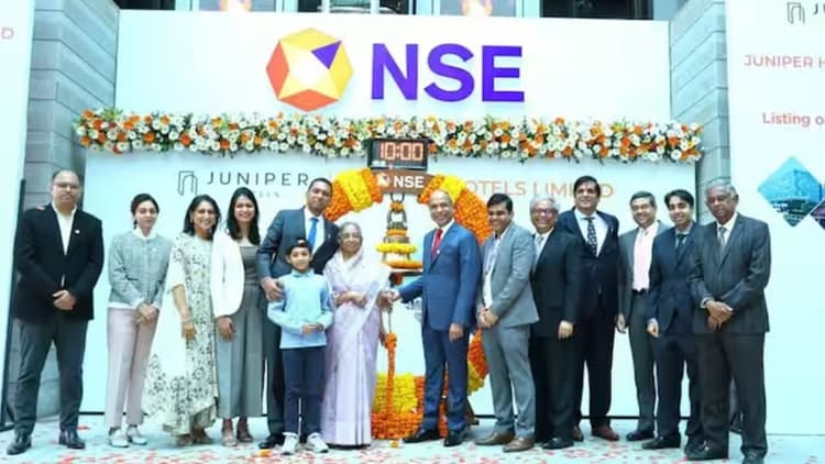 Juniper Hotels IPO Listing: हयात ब्रांड के तहत होटल चलाने वाली जुनिपर होटल्स लिमिटेड का शेयर बुधवार को अपने निर्गम मूल्य 360 रुपये पर बेहद मामूली बढ़त के साथ सूचीबद्ध हुआ. हालांकि, बाद में यह 11 प्रतिशत चढ़ गया. बीएसई पर कंपनी का शेयर निर्गम मूल्य से 0.33 प्रतिशत ऊपर 361.20 रुपये पर सूचीबद्ध हुआ. बाद में इसमें तेजी आई और यह 10.36 प्रतिशत उछलकर 397.30 रुपये पर पहुंच गया, जो इसकी ऊपरी सर्किट सीमा है. एनएसई पर कंपनी का शेयर 1.38 प्रतिशत की बढ़त के साथ 365 रुपये पर सूचीबद्ध हुआ. बाद में यह 10.47 प्रतिशत बढ़कर 397.70 रुपये पर पहुंच गया.