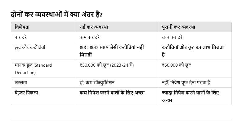 पुरानी कर व्यवस्था और नई कर व्यवस्था में अंतर.