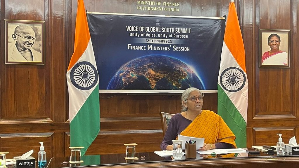 नई दिल्ली : केंद्रीय वित्त मंत्री निर्मला सीतारमण ने गुरुवार को वायस ऑफ ग्लोबल साउथ शिखर सम्मेलन में कहा कि हालिया भू-राजनीतिक तनाव और कोरोना महामारी ने वैश्विक कर्ज से जुड़ी असुरक्षा को बढ़ा दिया है. उन्होंने कहा कि अगर इनसे नहीं निपटा गया, तो वैश्विक मंदी उत्पन्न हो सकती है और लाखों लोगों को गरीबी में ढकेल सकती है. वित्त मंत्री सीतारमण ने शिखर सम्मेलन को वीडियो कॉन्फ्रेंसिंग के जरिए संबोधित करते हुए कहा कि भारत दशकों से विकास के पथ पर हमारी सहयात्री रहे वैश्विक दक्षिण (ग्लोबल साउथ) के दृष्टिकोण को रखने को उत्सुक है.