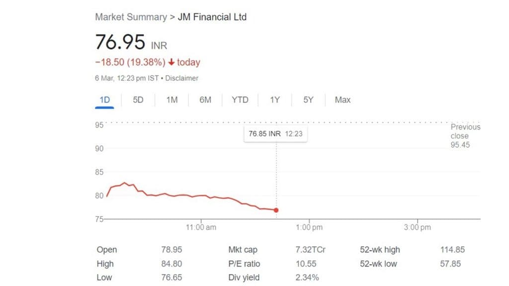 RBI की सख्ती के बाद जेएम फाइनेंशियल को लगा तेज झटका, 19% से अधिक टूट गया स्टॉक का भाव