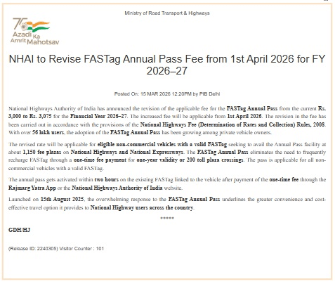 - वैधता: यह पास 1 साल या 200 टोल क्रॉसिंग (जो भी पहले हो) के लिए मान्य है.