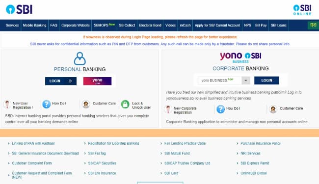 भारतीय स्टेट बैंक के ग्राहक ऑनलाइन रजिस्ट्रेशन के लिए सबसे पहले आधिकारिक वेबसाइट https://www.onlinesbi.com/ पर जाएं. यहां बायीं ओर आपको पर्सनल बैंकिंग का सेक्शन दिखेगा. उसके नीचे बायीं ओर न्यू यूजर रजिस्ट्रेशन का कॉलम दिखायी देगा.