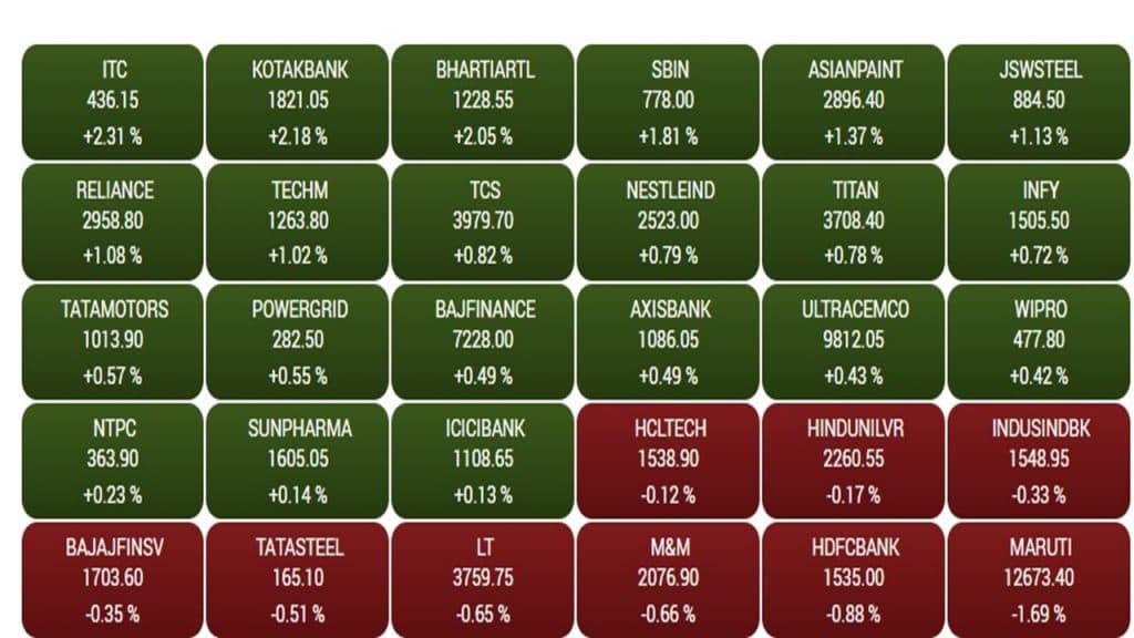बॉम्बे स्टॉक एक्सचेंज के तीस शेयरों वाले सेंसेक्स में 21 कंपनियां लाभ में कारोबार करते हुए बंद हुई. जबकि, नौ कंपनियां नुकसान में रही. वहीं, निफ्टी पर आईटी और फॉर्मा में मामूली नुकसान देखने को मिला. एफएमसीजी सेक्टर में सबसे तेज 657 अंकों का उछाल देखने को मिला. जबकि, बैंक में 261 अंक, आईटी में 192 अंक, कंज्यूमर ड्यूरेबल में 230 अंक और ऑयल एंड गैस में 175 अंकों की तेजी देखने को मिली. निफ्टी पर आज कोल इंडिया, बीपीसीएल, कोटक बैंक, आईटीसी, हिंडाल्को और भारती एयरटेल के स्टॉक टॉप गेनर्स में शामिल हुए. जबकि, सिप्ला, एचडीएफसी लाइफ, मारुति, श्रीराम फाइनेंस और एचडीएफसी बैंक स्टॉक में तेजी देखने को मिली.