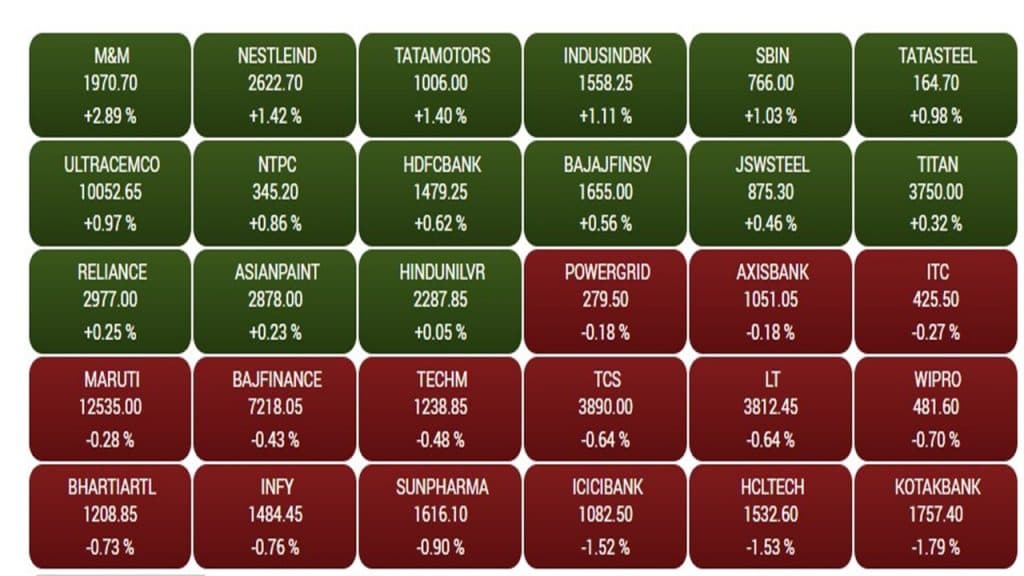 बीएसई के तीस शेयरों वाले सेंसेक्स पर 15 कंपनियों के स्टॉक बढ़त के साथ कारोबार करते हुए दिखे. जबकि, 15 कंपनियों के शेयर नुकसान में कारोबार करते हुए बंद हुए. निफ्टी पर बैंक, फाइनेंशियल सेक्टर, फॉर्मा, आईटी और हेल्थ केयर में गिरावट देखने को मिली. जबकि, ऑटो तेजी से दौड़ता नजर आया. वहीं, एफएमसीजी सेक्टर भी 214 अंकों की बढ़त के साथ कारोबार कर रहा था. जबकि, मेटल में 130 अंकों की बढ़त देखने को मिली. निफ्टी पर टाटा कंज्यूमर, महिंद्रा एंड महिंद्रा, बजाज ऑटो, बीपीसीएल, अदाणी पोर्ट्स और नेस्ले इंडिया के स्टॉक टॉप गेनर्स की श्रेणी में शामिल हुए. जबकि, हीरो मोटो कॉर्प, कोटक महिंद्रा, एचसीएल टेक, आईसीआईसीआई और एसबीआई लाइफ के शेयर टॉप लूजर्स में शामिल हुए.