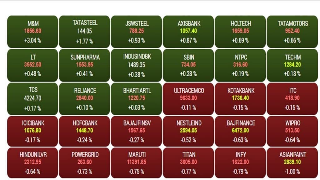 सेंसेक्स पर तीस शेयरों में से 15 कंपनियों के स्टॉक लाभ में कारोबार कर रहे हैं. जबकि, 15 कंपनियों के स्टॉक में लाल का निशान लगा है. वहीं निफ्टी पर कारोबार के दौरान जहां बैंक निफ्टी 149.10 अंक और एफएमसीजी 302.30 अंक गिरकर कारोबार कर रहा है. ऑटो को छोड़कर सभी सेक्टरों में लाल का निशान देखने को मिल रहा है. निफ्टी पर महिंद्रा एंड महिंद्रा के स्टॉक में तीन प्रतिशत की तेजी देखने को मिली है. टाटा स्टील, जेएसडब्यू स्टील, अपोलो हॉस्पीटल, डॉ रेड्डी, बजाज ऑटो और एक्सिस बैंक टॉप गेनर्स की लिस्ट में शामिल हुए. जबकि, अदाणी इंटरप्राइजेज, अदाणी पोर्ट्स, यूपीएल, पावरग्रिड, एशियन पेंट्स, टाइटेन और टाटा कंज्यूमर के शेयर टॉप लूजर की श्रेणी में शामिल हुए.