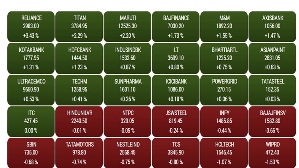 बीएसई के तीस शेयरों वाले सेंसेक्स पर 11 कंपनियां नुकसान में बंद हुआ. जबकि, 19 कंपनियों के स्टॉक में तेजी देखने को मिली. निफ्टी पर मिलाजुला असर देखने को मिला. बैंक, ऑटो, फाइनेंशियल सर्विस, रिलयिली, प्राइवेट बैंक, कंज्यूमर ड्यूरेबल और ऑयल एंड गैस में जबरदस्त तेजी देखने को मिली. निफ्टी पर रिलांयस, मारुति, बजाज ऑटो, बजाज फाइनेंस, टाइटेन और एक्सिस बैंक के शेयर टॉप गेनर्स की श्रेणी में शामिल हुए. जबकि, यूपीएल, हीरो मोटो कॉर्प, कोल इंडिया, टाटा कंज्यूमर, विप्रो और डॉ रेड्डी के शेयर टॉप लूजर की श्रेणी में शामिल हुए.