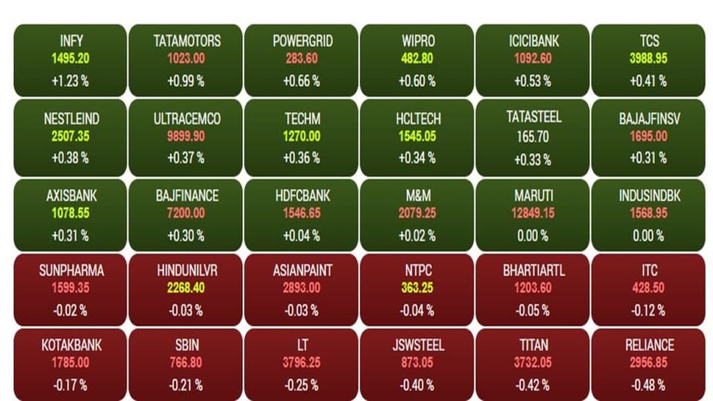 बीएसई के तीस शेयरों वाले सेंसेक्स में 12 कंपनियों के स्टॉक में लाल का निशान देखने को मिल रहा है. जबकि, 18 कंपनियां लाभ में कारोबार कर रहे हैं. निफ्टी पर लगभग सभी इडेक्स में अच्छा कारोबार हो रहा है. आईटी में आज भी रैली जारी है. इंडेक्स में 302 अंकों की तेजी देखने को मिल रही है. जबकि, एफएमसीजी सेक्टर में 166 अंकों की गिरावट देखने को मिल रही है. निफ्टी पर इंफोसिस, हीरो मोटो कॉर्प, टाटा मोटर्स, विप्रो, टीसीएस और टेक महिंद्रा के स्टॉक टॉप गेनर्स बने हैं. जबकि, आयशर मोटर्स, ओएनजीसी, रिलायंस, बीपीसीएल और टाइटेन के स्टॉक आज टॉप लूजर की श्रेणी में शामिल हुए हैं.