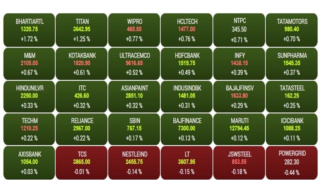 बीएसई के तीस शेयरों वाले सेंसेक्स पर 25 कंपनियों के स्टॉक में तेजी देखने को मिल रही है. जबकि, पांच कंपनियों के स्टॉक में लाल का निशान है. वहीं, निफ्टी पर बैंक, आईटी और कंज्यूमर ड्यूरेबल में तेजी देखने को मिल रही है. इसके अलावा भी सभी सेक्टरों में बढ़त के साथ कारोबार हो रहा है. जबकि, मेटल सेक्टर में मामूली गिरावट देखने को मिल रही है. निफ्टी पर भारती एयरटेल, एचसीएल टेक, टाइटेन, बजाज फाइनेंस, ग्रासिम, एनटीपीसी और महिंद्रा एंड महिंद्रा के स्टॉक टॉप गेनर्स में शामिल हुए. जबकि, ब्रिटेनिया, टाटा कंज्यूमर, हिंडाल्को, पावरग्रिड, एल एंड टी और बीपीसीएस के स्टॉक टॉप लूजर्स में शामिल हुए.