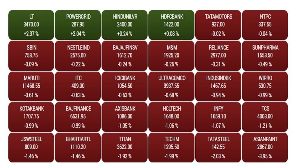 सेंसेक्स पर तीस में से 26 शेयरों में गिरावट देखने को मिली. वहीं, केवल चार कंपनियों के स्टॉक में हरे का निशान देखने को मिला. जबकि, बाजार बंद होने तक कंपनियों के शेयर लाभ में कारोबार करते हुए बंद हुए. वहीं, निफ्टी पर बैंक, फाइनेंशियल सर्विस, आईटी, मेटल, फॉर्मा, पीएसयू बैंक, प्राइवेट बैंक, रियलिटी और कंज्यूमर ड्यूरेबल में बड़ी गिरावट देखने को मिली. जबकि, केवल ऑटो, एफएमसीजी और ऑलय एंड गैस सेक्टर में तेजी देखने को मिली.