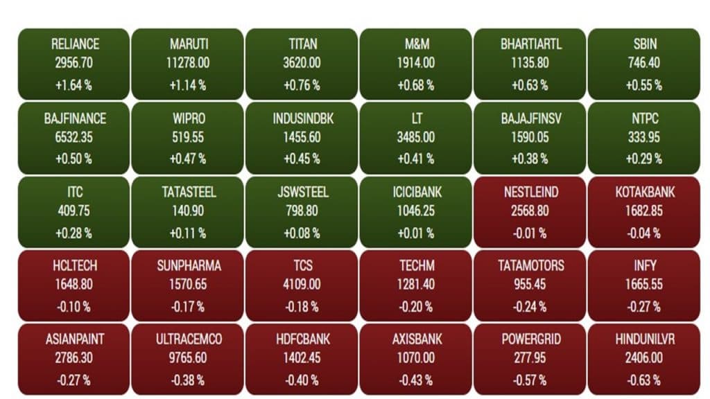 Share Market Opening: भारतीय शेयर बाजार की सप्ताह के चौथे कारोबारी दिन एक बार फिर से सपाट चाल देखने को मिल रही है. सुबह 9.30 बजे सेंसेक्स 0.096 प्रतिशत यानी 69.50 अंकों की मामूली तेजी के साथ 72,374.38 पर कारोबार करता हुआ दिख रहा है. जबकि, निफ्टी 0.036 प्रतिशत यानी केवल आठ अंकों की तेजी के साथ 21,959.15 पर बना हुआ है. सेंसेक्स पर तीस में से 16 कंपनियों के शेयर में तेजी देखने को मिल रही है. जबकि, 14 कंपनियों के शेयर में नुकसान में हैं. आज रिलायंस, मारुति, टाइटन और महिंद्रा एंड महिंद्रा बाजार में टॉप गेनर्स में शामिल हुए. जबकि, हिंदुस्तान यूनिलिवर, पावर ग्रिड, एक्सिस बैंक, एचडीएफसी और कोटक महिंद्रा के शेयर टॉप लूजर की श्रेणी में शामिल हुए.