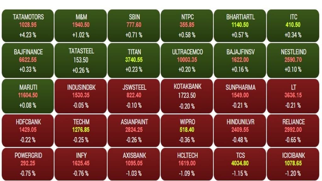 Share Market Opening: भारतीय शेयर बाजार में आज सुस्ती का दौर देखने को मिल रही है. बाजार में छायी मायूसी के बीच सुबह 9.30 बजे सेंसेक्स 0.21 प्रतिशत यानी 158.39 अंक टूटकर 73,713.90 पर कारोबार कर रहा था. जबकि, निफ्टी 0.18 प्रतिशत यानी 39.30 अंकों की गिरावट के साथ 22,366.30 पर दिख रहा है. तीस शेयरों वाले सेंसेक्स पर 13 कंपनियां मात्र हरे के निशान के साथ कारोबार कर रही हैं. जबकि, 17 कंपनियों में लाल का निशान लगा हुआ है. टाटा मोटर्स के डीमर्जर की खबर के बाद कंपनी के शेयर में 4.48 प्रतिशत का उछाल देखने को मिल रहा है. सेंसेक्स पर टॉप गेनर्स में टाटा मोटर्स, महिंद्रा एंड महिंद्रा, एसबीआई और एनटीपीसी शामिल है. जबकि, टॉप लूजर की श्रेणी में टीसीएस, एचसीएल टेक, आईसीआईसीआई, इफोसिस और रिलायंस शामिल है.