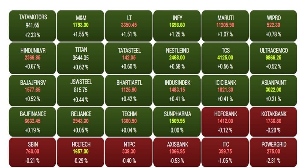 सेंसेक्स और निफ्टी के ज्यादातर इंडेक्स में हरे का निशान दिख रहा है. निफ्टी पर ऑटो इंडेक्स में सबसे तेज उछाल आया है. सुबह 9.40 बजे ऑटो इंडेक्स 1.57 प्रतिशत यानी 313.50 अंक चढ़कर 20,295.20 पर पहुंच गया. इसके अवाला, बैंक आईटी, फॉर्मा, पूएसयू बैंक और मीडिया में तेजी दिख रही है. जबकि, रियलिटी सेक्टर में मामूली गिरावट देखने को मिल रही है. मिडकैप और स्मॉल कैप के शेयरों में भी तेजी देखने को मिल रही है.
