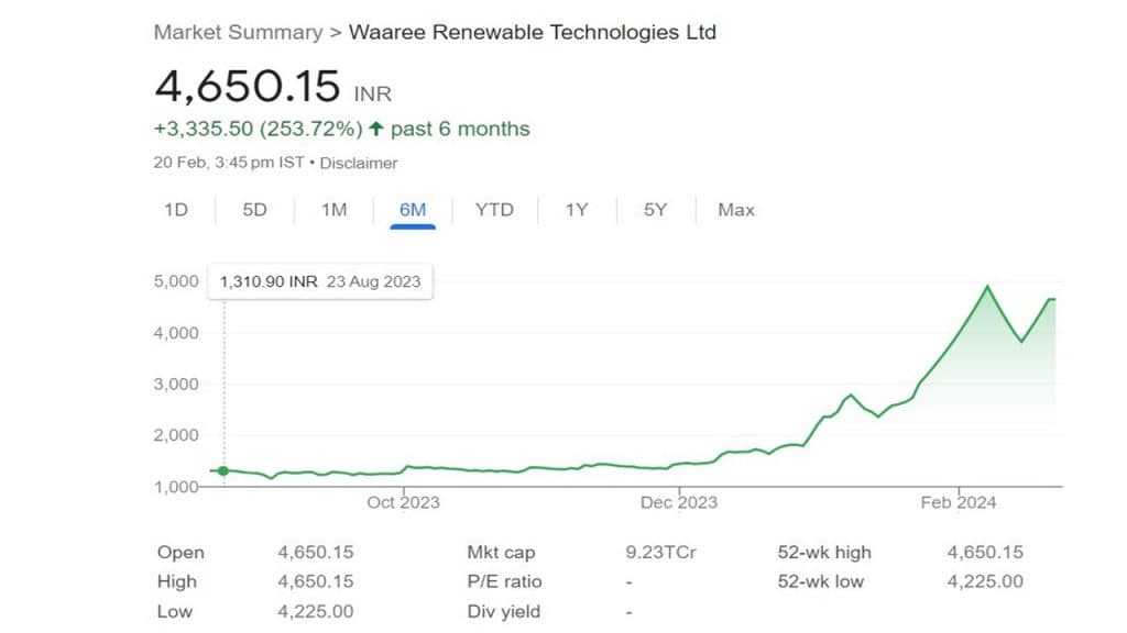 वारी रिन्यूएबल टेक्नोलॉजी शेयर प्राइस