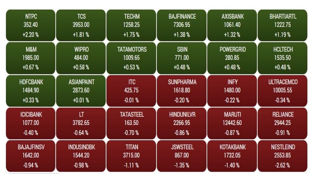 बीएसई के तीस शेयरों वाले सेंसेक्स में 14 कंपनियां कारोबार करते हुए लाभ में बंद हुई. जबकि, 16 कंपनियों के स्टॉक में गिरावट देखने को मिली. निफ्टी पर क्लोजिंग तक सभी सेक्टरों में मिलाजुला कारोबार देखने को मिला. सबसे ज्यादा गिरावट 244.30 अंकों की एफएमसीजी सेक्टर में देखने को मिली. इसके अलावा, ऑटो, फॉर्मा, प्राइवेट बैंक, रियलिटी और हेल्थ केयर में गिरावट देखने को मिली. जबकि, आईटी और पीएसयू बैंकिंग में भी जबरदस्त तेजी देखने को मिली. निफ्टी पर श्रीराम फाइनेंस, एनटीपीसी, एक्सिस बैंक, टेक महिंद्रा, टीसीएस और बजाज फाइनेंस के स्टॉक टॉप गेनर्स में शामिल हुए. जबकि, नेस्ले इंडिया, बजाज ऑटो, डॉ रेड्डी, ब्रिटेनिया और कोटक महिंद्रा बैंक के स्टॉक टॉप लूजर की श्रेणी में शामिल हुए हैं.