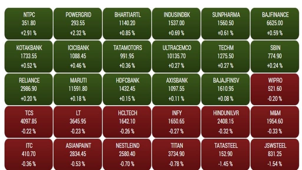 निफ्टी पर मिलाजुला कारोबार देखने को मिल रहा है. बैंक, फाइनेंशियल सर्विस, फॉर्मा, पीएसयू बैंक, प्राइवेट बैंक, रियलिटी, हेल्थ केयर और ऑयल एंड गैस सेक्टरों में तेजी देखने को मिल रहा है. जबकि, ऑटो, एफएमसीजी, आईटी, मेटल और कंज्यूमर ड्यूरेबल में नुकसान देखने को मिल रहा है. आज मार्केट में एनटीपीसी, पावर ग्रिड, डॉ रेड्डी और ओएनजीसी के स्टॉक टॉप गेनर्स की श्रेणी में शामिल हुए. जबकि, जेएसडब्लू, आयशर मोटर्स, टाटा स्टील, टाटा कंज्यूमर और टाइटन के शेयर टॉप लूजर की श्रेणी में शामिल हुए.