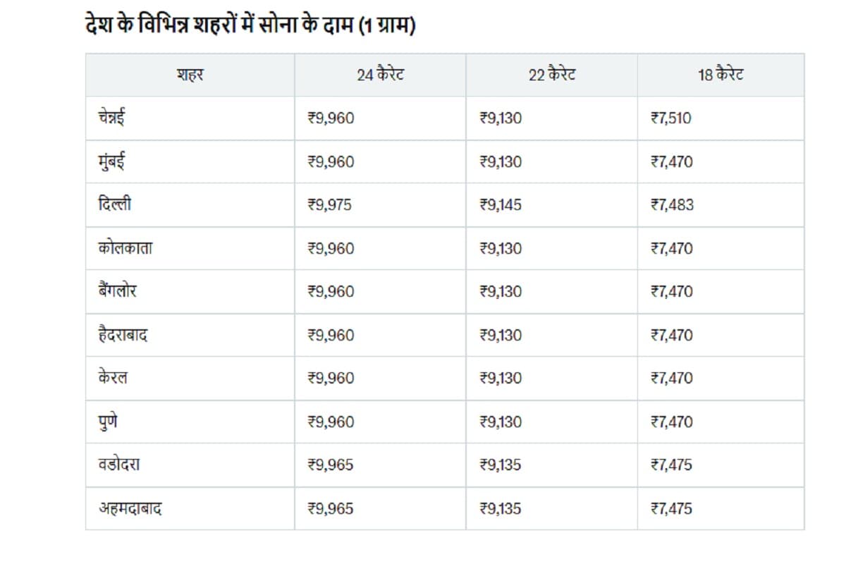 सोने की कीमतों में भी मजबूती देखने को मिली. 99.9% शुद्धता वाला सोना 430 रुपये बढ़कर 99,690 रुपये प्रति 10 ग्राम पर पहुंच गया, जबकि 99.5% शुद्धता वाला सोना 400 रुपये चढ़कर 99,100 रुपये प्रति 10 ग्राम हो गया.
