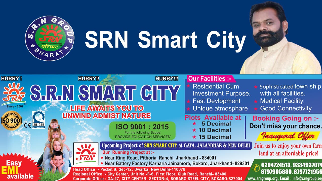 बता दें कि एसआरएन ग्रुप ने रांची के पिठोरिया में एक स्मार्ट सिटी बनाने की शुरुआत की है. एसआरएन ग्रुप का यह स्मार्ट प्रोजेक्ट 300 एकड़ में फैला हुआ है. इस स्मार्ट सिटी में रहने वाले लोगों को अस्पताल, स्कूल, पार्क और मंदिर की सुविधा मिलेगी. इस संबंध में एसआरएन ग्रुप के चेयरपर्सन डॉ नवल शर्मा ने बताया कि हमारा मूलमंत्र है-हेल्प दि पीपुल्स गॉड हेल्प यू.