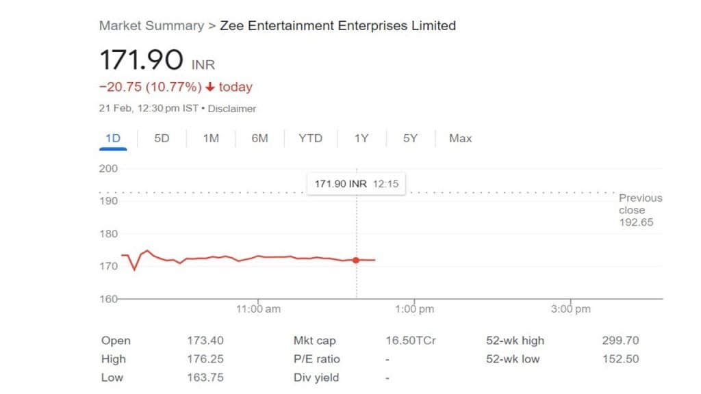 इस बीच जी एंटरटेनमेंट इंटरप्राइजेज के स्टॉक आज फिर से बाजार में धड़ाम से गिर गए हैं. दोपहर 12.35 बजे कंपनी के शेयर 10.74 प्रतिशत यानी 20.70 रुपये गिरकर 171.95 पर कारोबार कर रहा है. हालांकि, पिछले एक महीने में कंपनी के निवेशकों को 10.10 प्रतिशत यानी 15.75 रुपये प्रति शेयर का मुनाफा हुआ है. जबकि, एक साल में निवेशकों को 18.44 प्रतिशत का घाटा हुआ है.