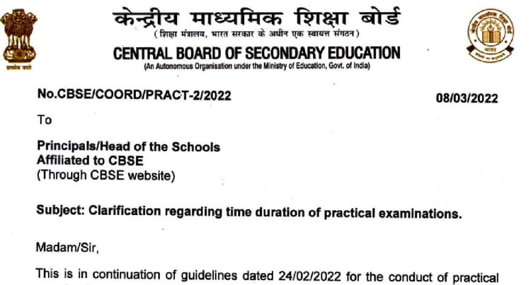 केंद्रीय माध्यमिक शिक्षा बोर्ड ने स्कूलों से कहा है कि वे बोर्ड परीक्षा 2023 के लिए पंजीकृत छात्रों की संख्या के अनुसार एक योजना बनाएं और उन्हें समय पर सूचित करें ताकि वे परीक्षा देने से न चूकें. बोर्ड की आधिकारिक सूचना के अनुसार, यदि कोई छात्र व्यावहारिक परीक्षा में शामिल होने में विफल रहता है, तो विशेष परीक्षा को निश्चित तिथियों के भीतर फिर से निर्धारित किया जाना चाहिए. उम्मीदवारों को सलाह दी जाती है कि वे बोर्ड द्वारा जारी सभी दिशा-निर्देशों को पढ़ें.